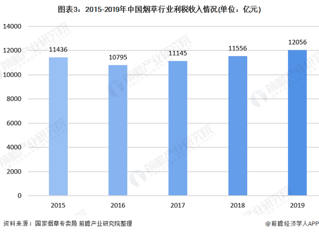 根据前瞻产业研究的分析,我国烟草行业税收一直以来都是国家税收的重要来源,根据国家烟草专卖局公布的数据显示,2019年烟草行业实现工商税利总额12056亿元,同比增长4.3%;上缴财政总额11770亿元,同比增长17.7%,税利总额和上缴财政总额创历史最高水平,为国家和地方财政增收、经济发展作出积极贡献。