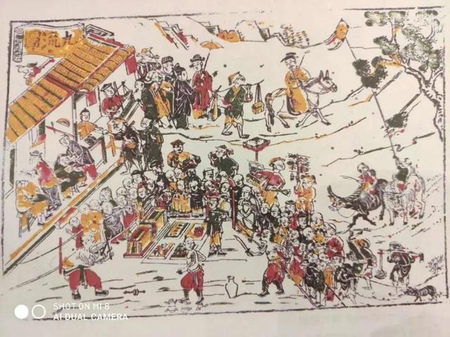 同样收于“漳州非物质文化遗产丛书”《漳州木版年画》专辑中的这幅《九流图》木版年画,我们也可以清晰看到摊贩摆摊卖货、表演杂耍等画面。