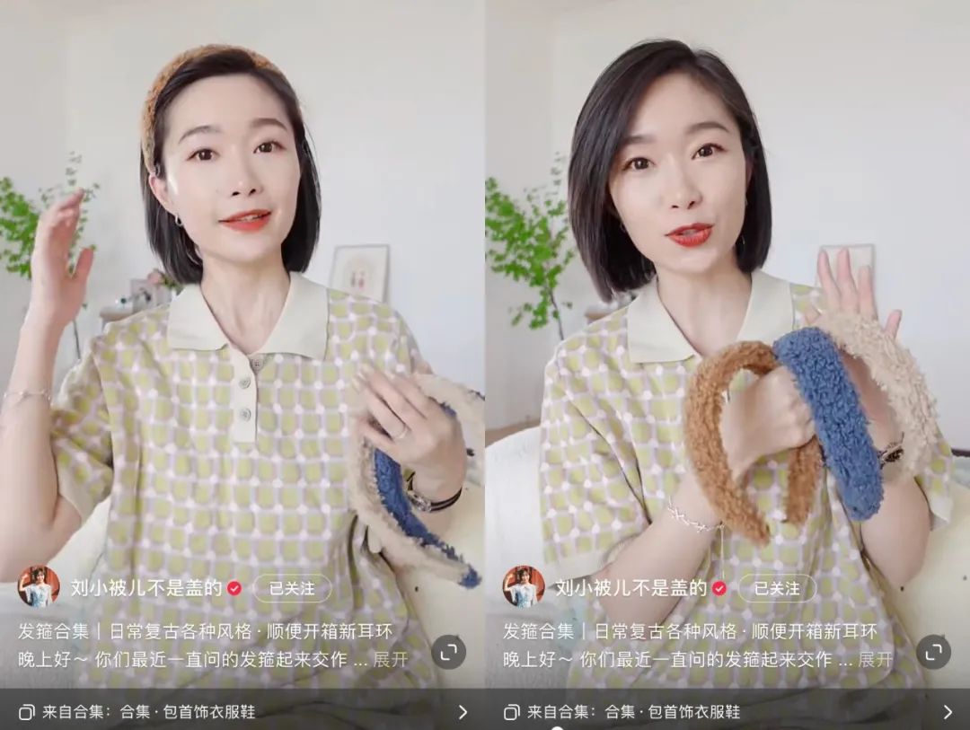 对于没有特别需要讲解知识点的配饰比如发箍,小被儿会选择直接分享,以呈现更加亲切自然的交流感。