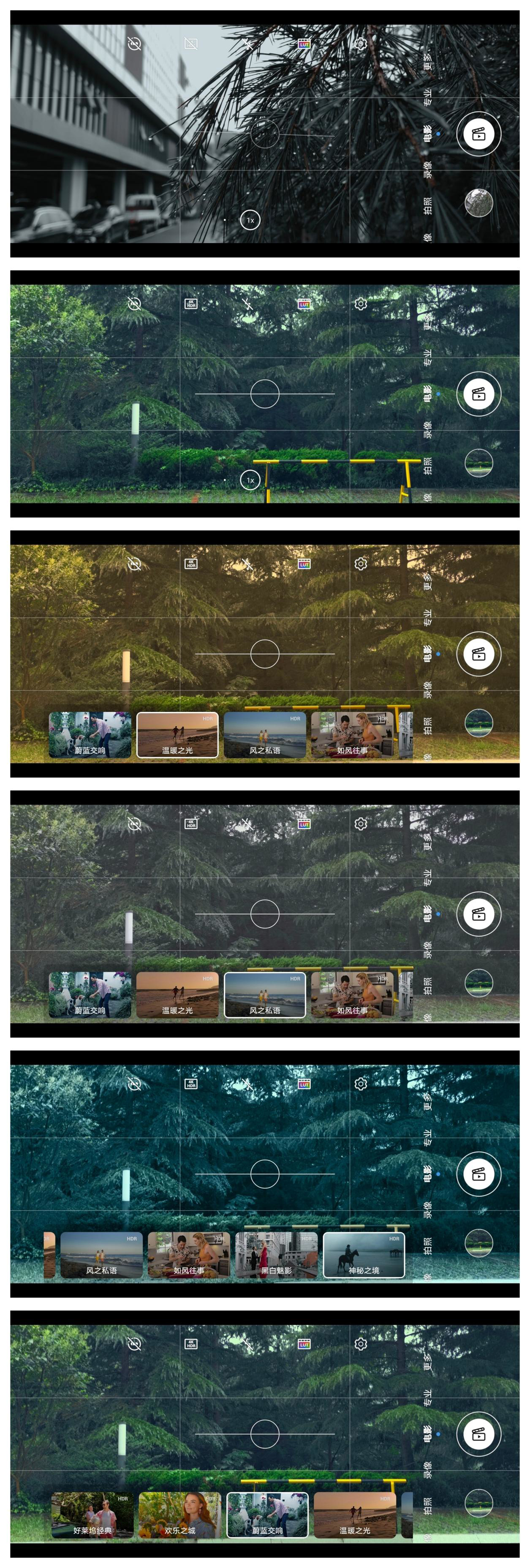 在相机界面中,荣耀 Magic3 Pro 为用户提供了“电影”模式按钮,选择之后可以拍摄 Magic-Log 格式的视频,同时还可以选择不同风格的 AI 影调。