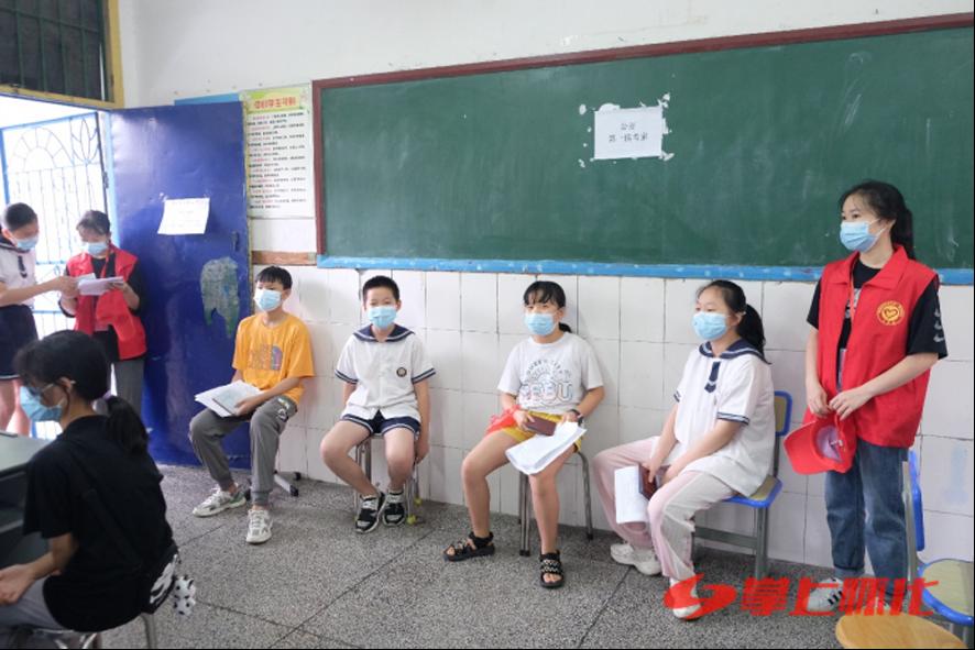 8月11日,湖南医药学院第一附属医院新冠疫苗流动接种队的医务人员走进校园,为12-14儿童接种新冠疫苗,并做好医疗保障工作。