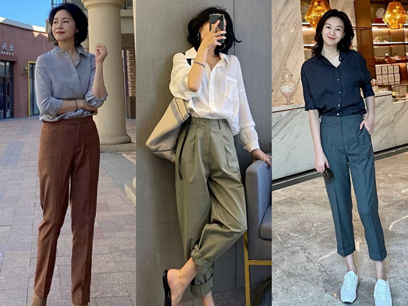 如果我们是职场女生,那么初秋最好多准备几件基础款的衬衫,就是很简约的翻领衬衫,颜色也最好选择经典色,黑白灰驼蓝都OK。选择衬衫时版型要稍宽松一些,这样既区别于工装衬衫,又增加了随性感,更适合40+的成熟女性。