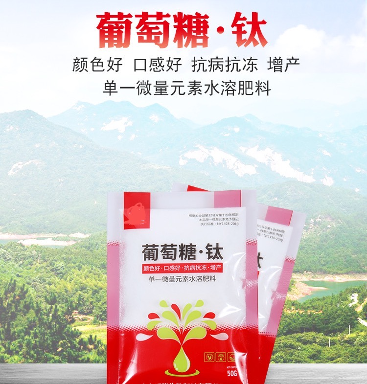 但是,植物在遭受外界不良环境胁迫时,比如说长时间的阴天,或者是植物的叶片遇到病变和破坏等问题,植物就无法通过光合作用来转化葡萄糖,所以这时候,植物体内的葡萄糖就没办法满足植物各个部位的生长需求,于是我们就需要人工少量的补充植物的葡萄糖,增加它的糖类含量来促进植物的生长和繁殖。 而葡萄糖肽这一种单一微量元素水溶肥,就可以很好地给植物在生长过程当中规避缺少葡萄糖的这一风险。