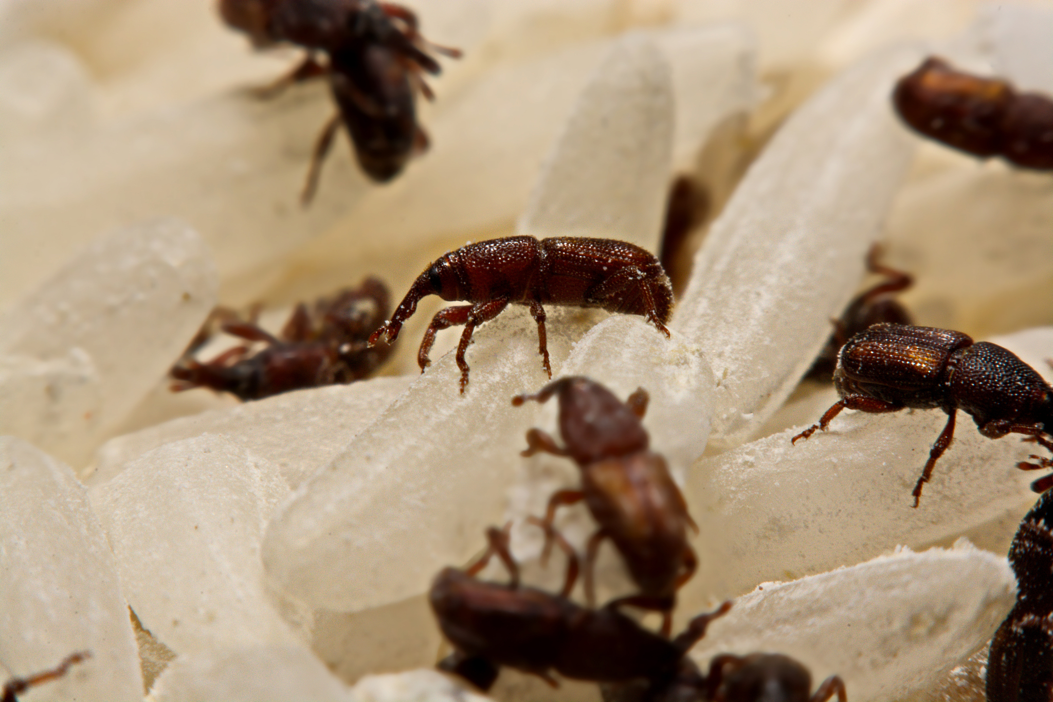 米虫,就是大米里的蛀虫,长得像个盔甲战士(还有一种是白色的蠕虫),有一个长长的触角,又像一头迷你大象,所以又被称为“米象”,你要知道此虫不是额外生成的,而是天生生长在大米中的,应该说从大米还生长在天地里时,此虫就已经寄生在其中,只不过虫卵及其小,大米虽经过层层筛选处理,还是无法将其根除,所以一直存在大米之中,直到遇到合适的温度和湿度,就会破壳而出,以大米为食,传宗接代,继而越来越多,直至成灾。