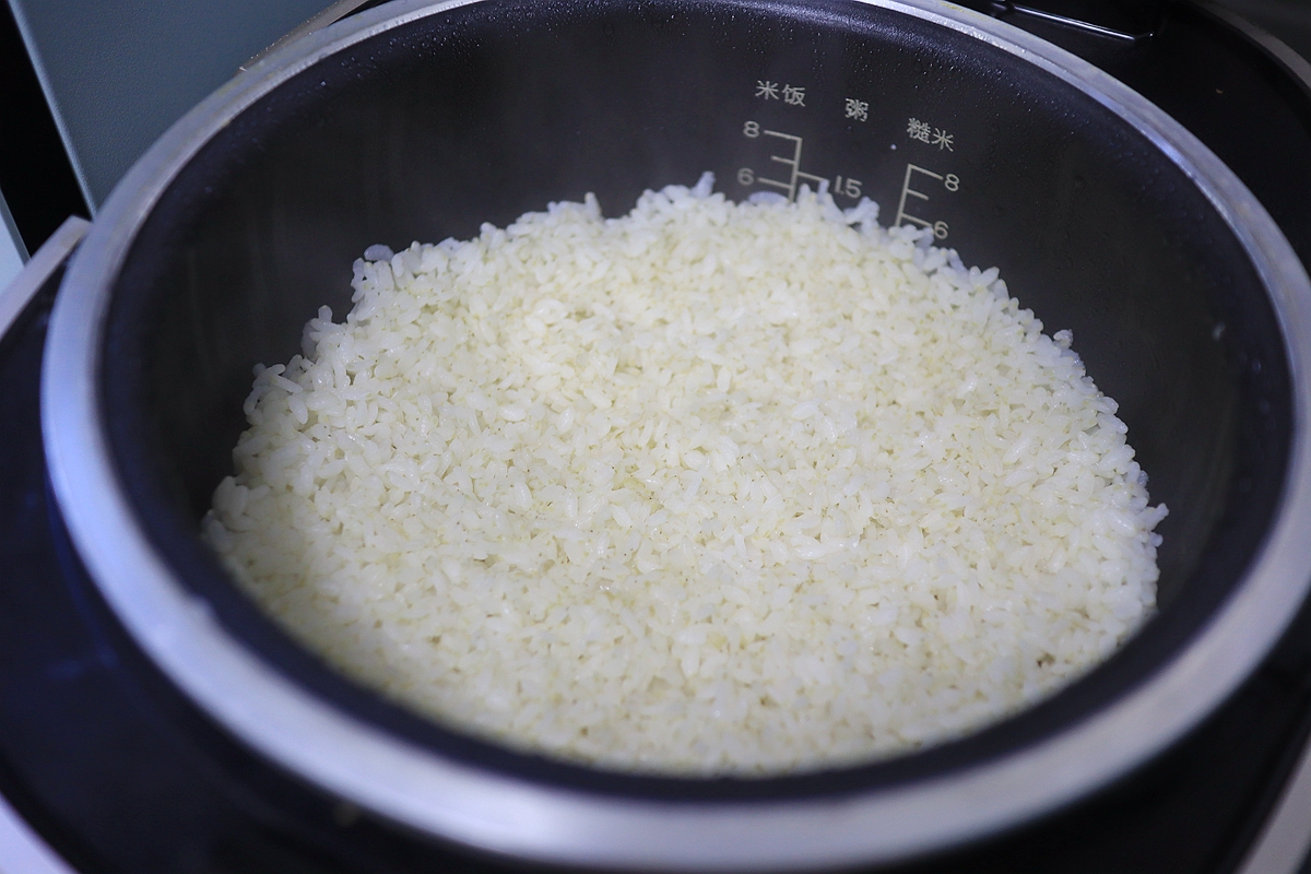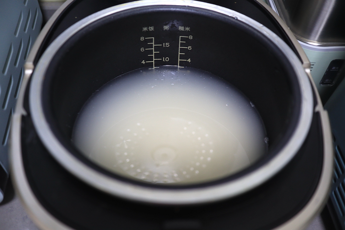 2. 淘洗干净,入电饭煲内胆;用预约功能,第二天早上就是焖熟的米饭;