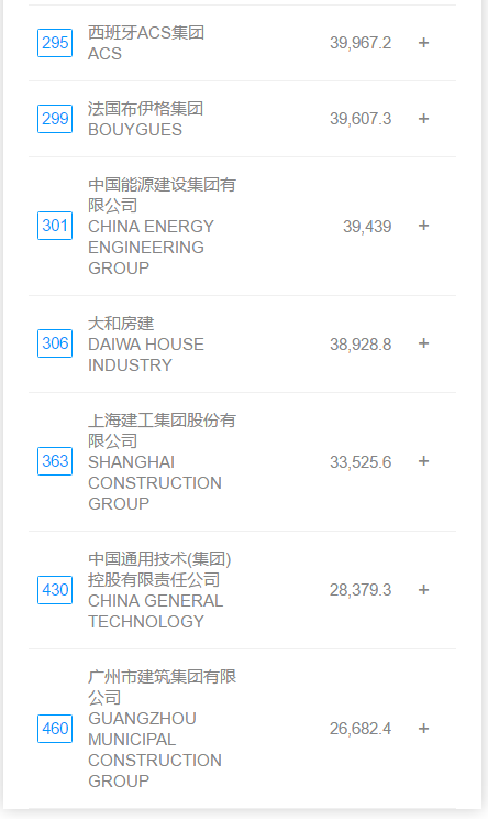 财富Plus APP于北京时间8月2日与全球同步发布了最新的《财富》世界500强排行榜,中国共有143家公司上榜,其中工程与建筑行业有10家中国企业上榜: