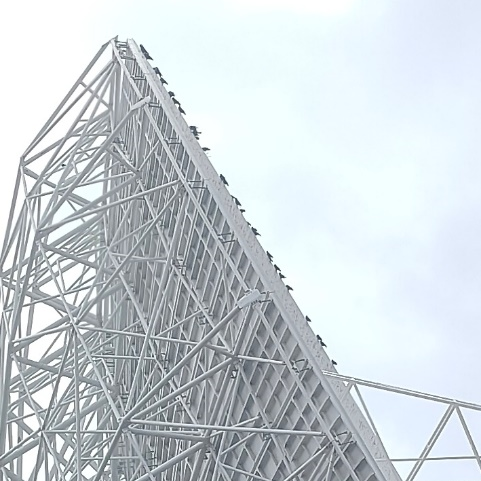 我们知道,为了躲避人造电磁干扰的影响,射电望远镜一般会建设在四周开阔无遮挡的地方(如果没有这样的地方,那就用炸药把它炸成这样的地方),所以无处落脚的鸟儿们不约而同地选择了在抛物面天线的边沿上站成一圈。比较调皮的可能还会飞到馈源上排泄一番,或是用喙啄一啄馈源的防水膜,试探试探防水膜牢不牢固,在确保防水膜经过啄击之后已经不防水了,才悠然离去。