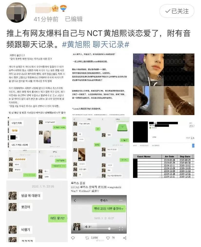 昨日晚间,NCT的中国成员黄旭熙被三位女生接连曝出私联粉丝、劈腿、找女方索要礼物等等丑闻,尤其是第三位女生还曝光了黄旭熙的未公开照片证明曾经的亲密关系。目前SM公司还没有任何回应,如果曝光信息为实,又一位“韩国绿卡”的滤镜要碎了。