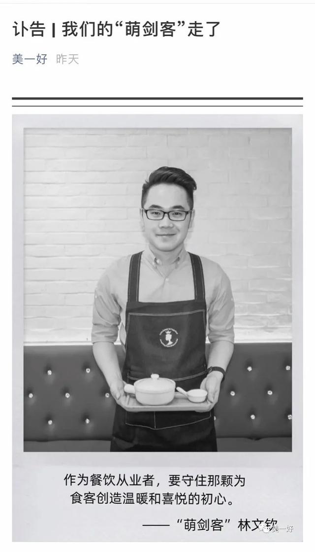 该讣告介绍,林文钦先后创立“意淇港式下午茶”、“大喜麻辣拌”、“锅聚侠”、“甲如花甲粉”等多个知名餐饮连锁品牌,全国加盟店超500余家,受到社会大众和加盟商一致好口碑。