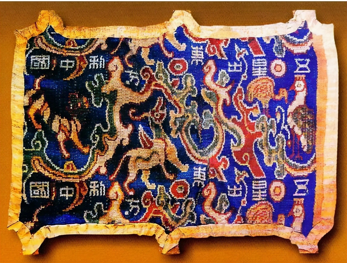 1995年10月,在我国新疆和田民丰县尼雅遗址中,出土了一座东汉末到魏晋时期的无名男女双人合葬墓,墓中就有一件蜀锦护膊,上面就写着“五星出东方,利中国”八个大字。