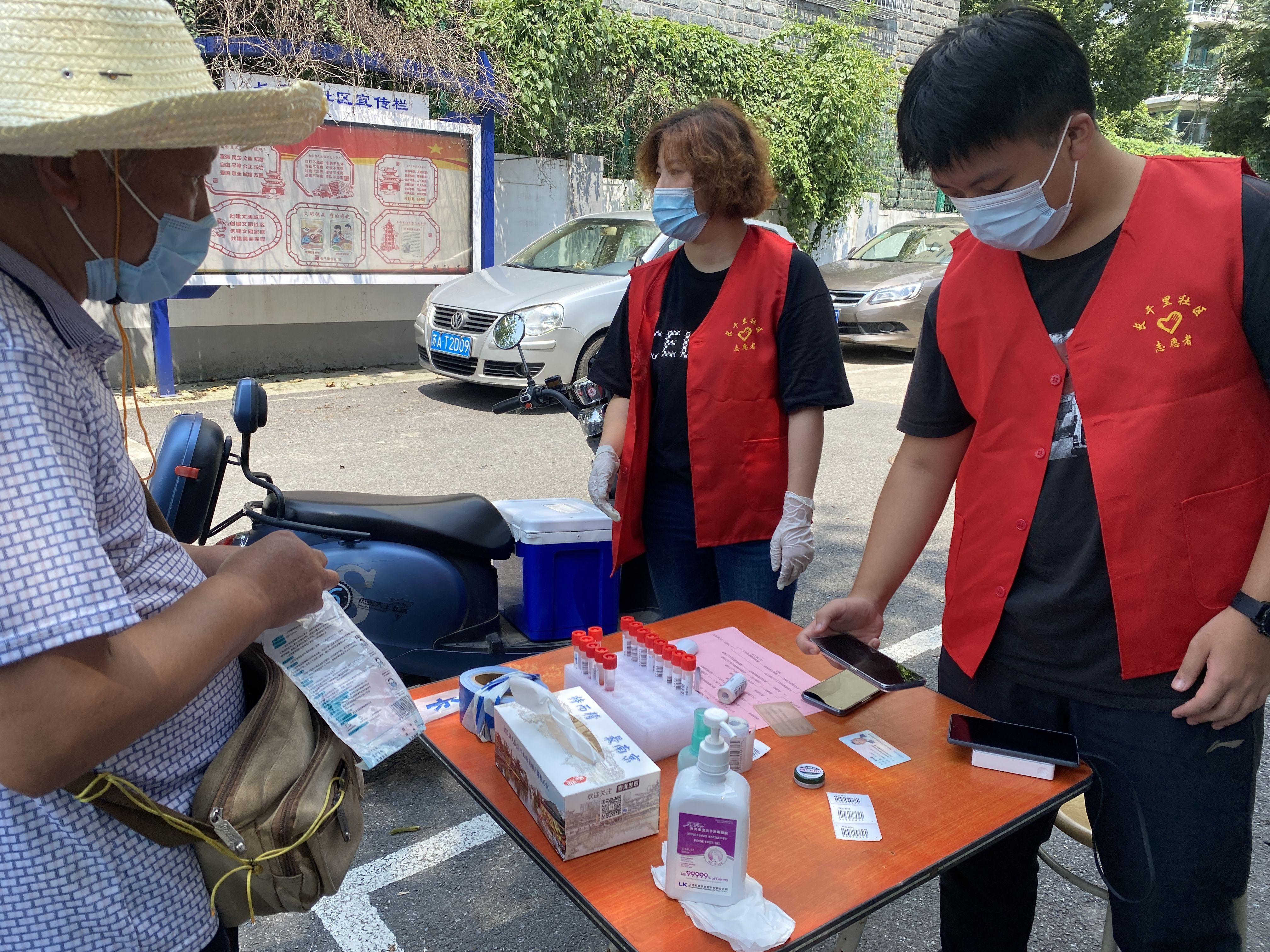 “本来与妈妈约好7月下旬一起回老家看望外公外婆的,自7月20日南京报告发生本土新冠肺炎疫情确诊病例以来,妈妈就积极报名参加志愿服务,爸爸也在雨花台区防疫一线工作,他们最近都早出晚归,非常辛苦,我也要向他们学习,因此自第二轮开始我也报名了,与妈妈成为了‘疫’线战友,假期能为南京防疫做些事,是一件很有意义的事情。”今年七月刚刚收到江苏理工学院研究生录取通知书的卞皓伟笑着说是受到父母和身边无数志愿者的影响。母亲杨国庆老师是南京市瑞金北村小学教师,他们学校作为秦淮区瑞金路街道核酸检测点之一,许多人民教师化身为“抗疫志愿者”。“抗疫既是为小家也是为大家的事,我希望我的儿子是一个心系社会的人。”母子齐上阵,同心战疫情,提前到岗、延时离岗是母子俩志愿工作的常态,尽管志愿工作十分辛苦,但是大家互相鼓励加油,时刻坚定着抗疫决心。