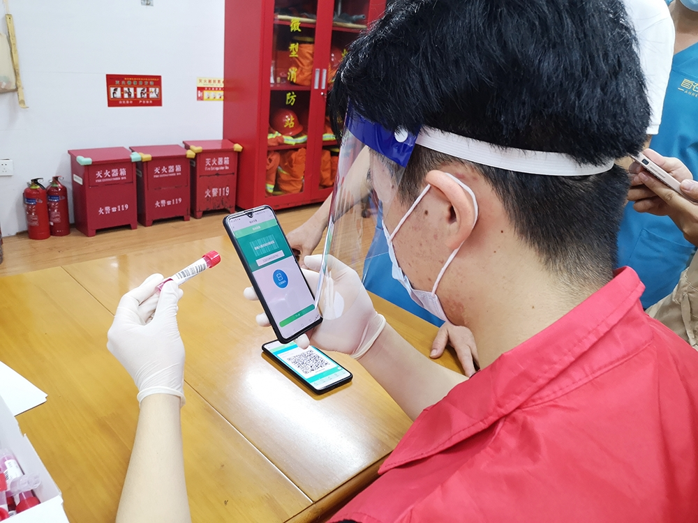“我要用行动回报我深爱的这个城市,只要有需要,我一直在”,小伙子话语不多但很憨厚。他叫姜伯晗,2001年6月出生,南通大学的准大一学生。“小伙子我没有手机怎么办,这要怎么操作?”8月1日上午8时,中华门街道长干里社区西街小学核酸检测采样点,前来等待采样的市民排起了长队,来自社区的志愿者姜伯晗正忙着为老人扫码录入信息。“奶奶,您的身份证带来了吗?”他熟练地用手机扫描登记。早上7点来到现场,到10点多他已经为200多位老人录入了信息。就这样,每次核酸检测他总是顶着炎炎烈日拍照、询问、录入、引导,每一个环节都认真细致,生怕出现任何一个小小的错误,影响到全员检测工作。在检测现场,他反复提醒参检人员保持好距离,戴好口罩。“小伙子,累不累?”有人问他。他笑了笑,累是累了点,但觉得非常有意义。