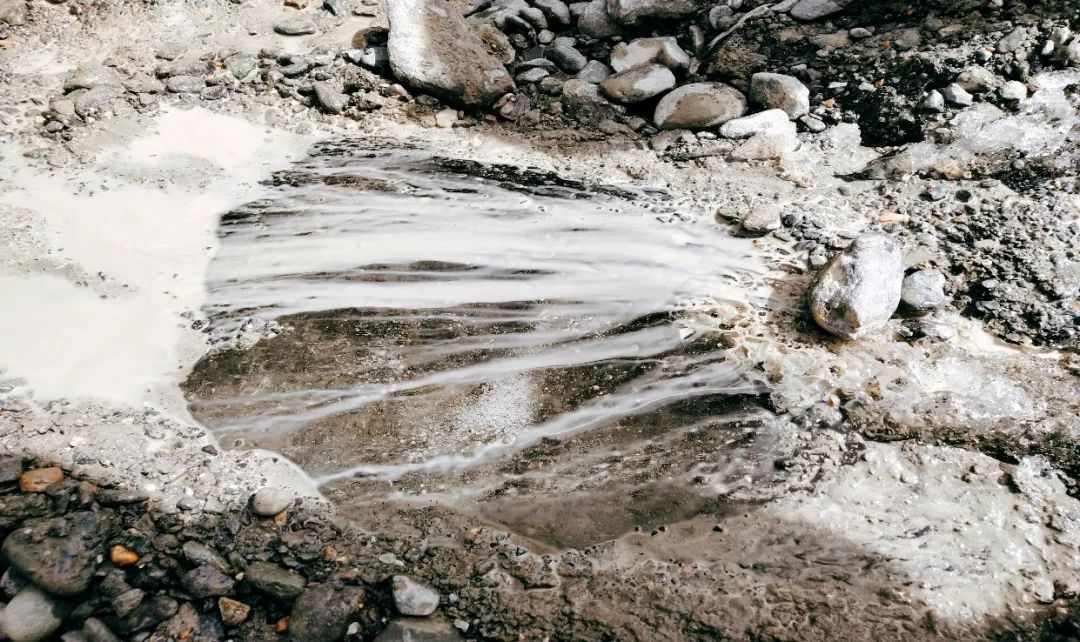 透明梦柯冰川冰雪消融时形成的湍流 笔者摄