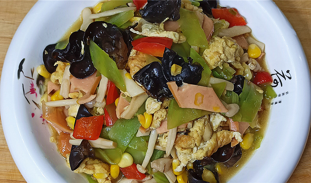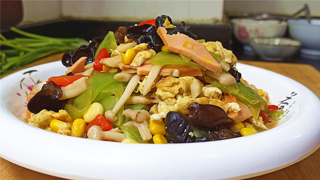 这道菜看似素菜,但是却营养丰富,这道菜采用莴笋、木耳、海鲜菇、鸡蛋还有玉米粒一起搭配制作而成,这些菜都是这个季节的应季菜,做出来的味道也相当的棒!味道鲜美中还透着清香的味道,香气十足,感觉素炒竟然做得比肉还好吃,看上去就很有食欲,在这个炎热的季节里,不想吃肉的话就来试一试这道家常菜的做法吧!