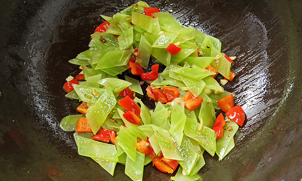 (4)莴笋和甜椒都是易熟食材,所以下锅简单翻炒一下就可以,炒时间久了会失去脆爽的口感,同时清香味道会失去。