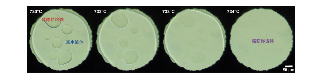 图|升温过程中硅酸盐熔体和富水流体均一形成超临界流体的过程