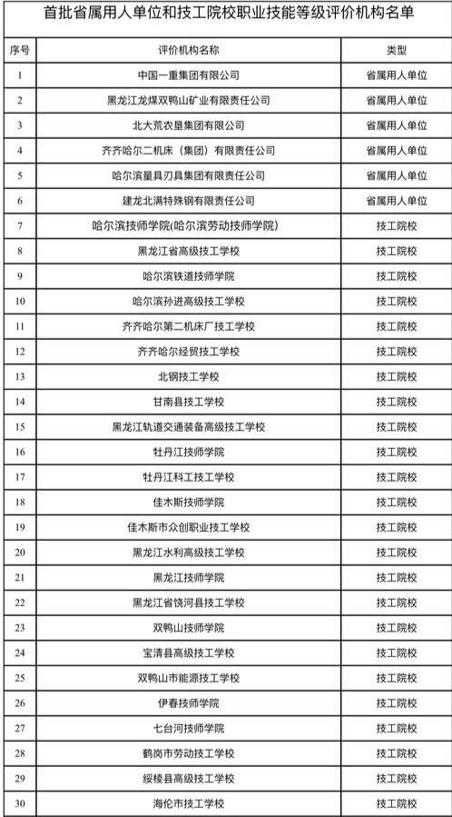 # 黑龙江省人社厅公布首批省属职业技能等级评价机构