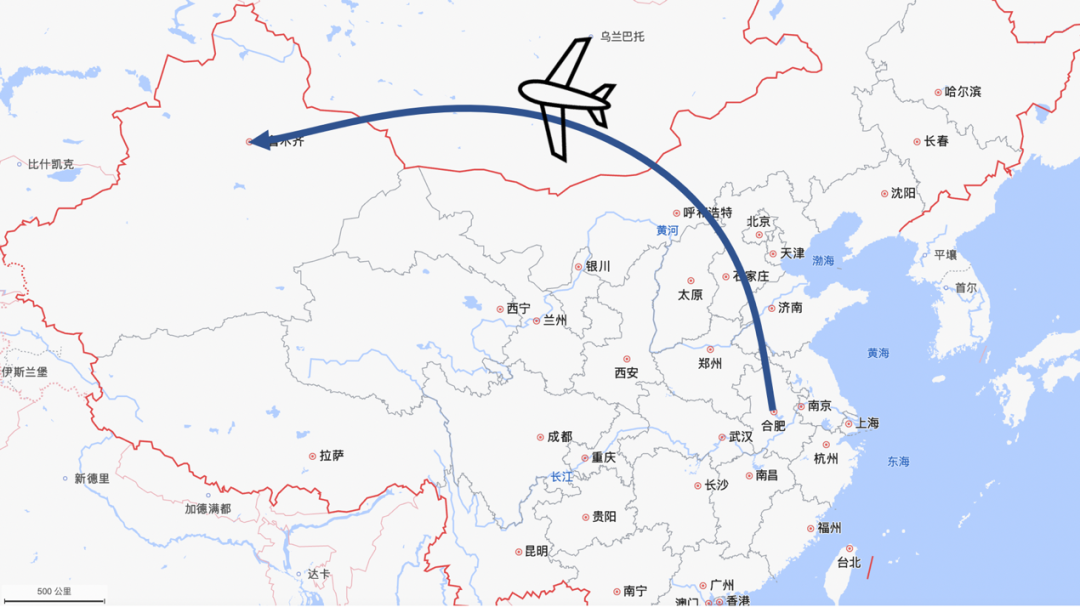 我们一行人从合肥出发抵达乌鲁木齐,两个城市的直线距离约2900公里,共需要飞行近五小时,这我们首次在东西距离上直观感受到祖国的幅员辽阔。