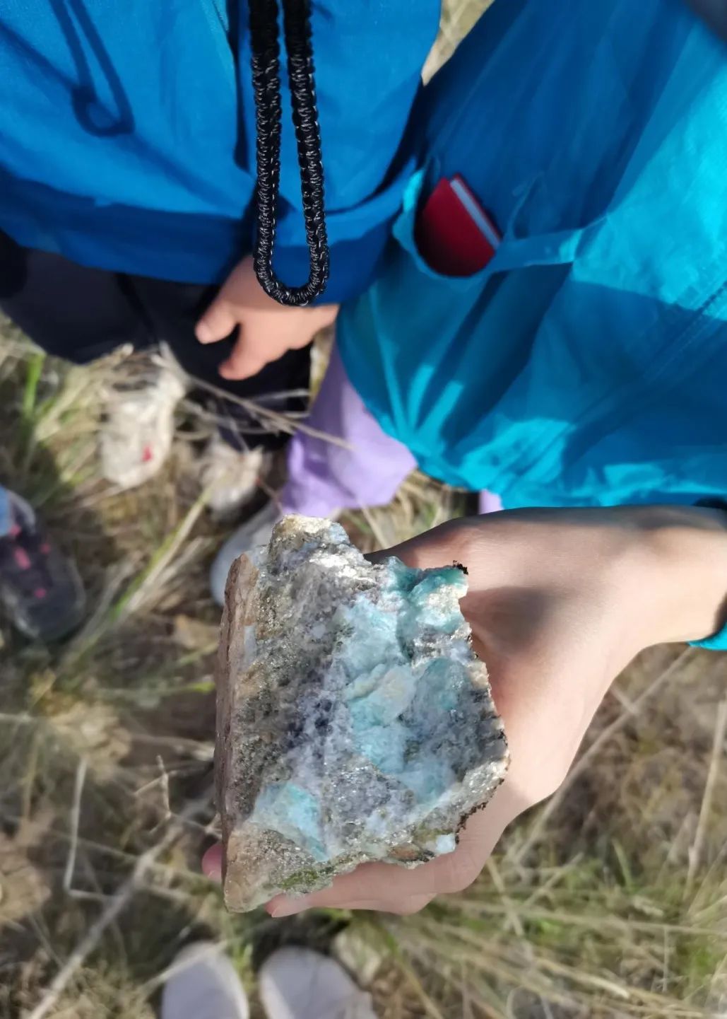 抵达阿勒泰后,我们在将军山进行了为期三天的采样工作,沿着岩体不同位置采集天河石脉、黑云母花岗岩等样品。花岗岩可能因天河石含量不同而呈现不同颜色,当天河石较多时,可以看到非常漂亮的水蓝色。