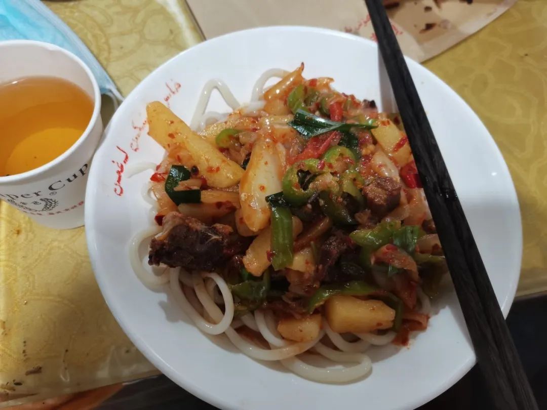 在野外工作之余,最让人流连忘返的,是当地的美食。黄面、手搓面、各式拌面、烤肉、卡瓦斯、大盘鸡…