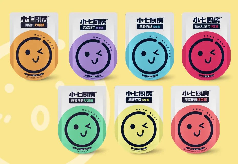 另外是品牌视觉的创新,自嗨锅以更具想象空间的方式构建新的包装美学,例如画面、臭臭螺、小七厨房等,均未在包装上呈现食物图,而是分别以中式人文风、波普艺术风、极简主义为主视觉风格,对传统的方便速食进行视觉升级,打造艺术与食品、视觉与味觉的跨界通感。