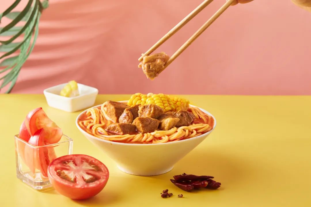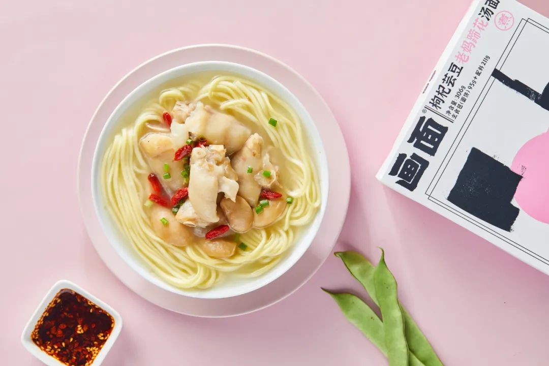 首先是细分品类的创新,针对当下健康化的消费趋势,打造更契合消费者需求的速食品类。比如新式快煮面品牌“画面”,不同于传统面条需要等水烧开后下面并另外自制浇头,面可直接冷水下锅,并倒入现炒浇头,以“大块肉”为差异化特色,还原油泼辣子面、蟹黄拌面、番茄牛腩面等地道的中华传统面食;大块肉搭配上其丰富的配菜浇头,保证了营养和口感,颠覆消费者认为方便面“不健康”的固有认知,在千亿规模的方便速食市场开辟出新式快煮面的新赛道。