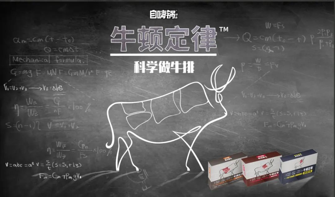 其次是品牌定位的创新,或在定位上更精准地对应消费者痛点,或运用新的整合方式布局品牌。比如冻品品牌“牛顿定律”,将品牌定位于“科学做出更适合中国人的牛排”,针对牛排小、薄、口感不佳等痛点,打造更符合中国人口味偏好及一餐所需能量的牛排。