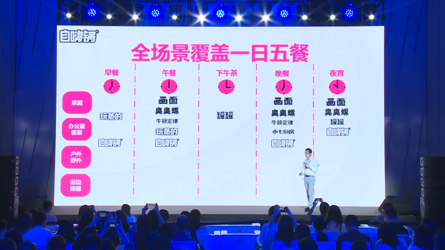 最后是场景层面的创新,自嗨锅通过差异化的食品品牌覆盖消费者的一日五餐。从早餐到夜宵,从宿舍到办公室,从家里到户外,自嗨锅以中国味为核心,将涵盖了不同烹饪方式的中华料理快消化,满足消费者在不同场景下的不同需求,建立“随时随地享受品质美食”的消费者心智。