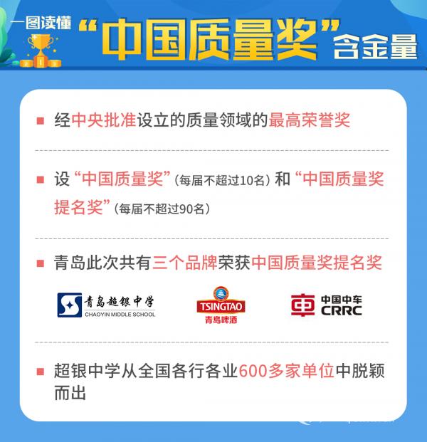 信网9月16日讯(首席记者 于晓)9月16日,由国家市场监督管理总局等单位主办的中国质量(杭州)大会在杭州隆重召开。会议举行了第四届中国质量奖颁奖仪式。美的集团等10家组织和个人获得第四届中国质量奖,青岛超银中学等90家组织和个人获得第四届中国质量奖提名奖。超银中学也成为全国唯一获此殊荣的初中学校。这是继2019年超银中学夺得青岛市市长质量奖之后,在质量领域获得的又一更具分量的荣誉。