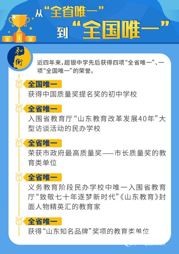 2016年,超银导入在国际上被广泛认同并被众多知名企业应用的卓越绩效管理模式,跳出教育做教育,促进学校质量管理进一步规范化、标准化。学校结合多年的教育教学实践总结提炼出“点亮人生”“和衡”素质教育质量管理模式,而这正是此次超银获奖的硬核实力。