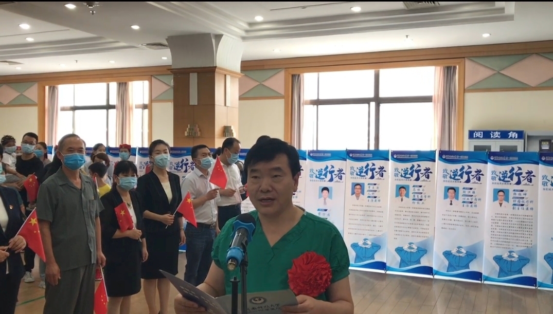 援助睢县医疗队队长、睢县中医院疫情救治指挥部指挥长、院长高社干在讲话中说,在这21天的艰苦奋战中,医疗队众志成城、高效工作,迅速建成视频通信系统,在县级医院建立了高效的现代化疫情救治指挥部,顺利接收458名患者,全面开展高危区分流的非新冠肺炎患者的医疗救治工作,对患者及其家属提供心理健康服务和心理危机干预,并率先开展患者报平安行动。成立了河科大一附院驰援商丘睢县中医院临时党支部,发展了5名专家火线入党,还开创性的成立了病友临时党支部,将党的组织建设到疫情防控的战场里,让党旗飘扬在疫情防控第一线的阵地上。用实际行动证明了我们是一支不怕苦不怕累,召之即来,来之能战,战之必胜的钢铁团队。彰显出一附院人的担当与风采,把大勇、大爱播撒在豫东大地,将一附院人的好品质、好作风、好形象、好口碑留在了豫东,传递出了河洛儿女与商丘人民患难与共、共克时艰的深厚情谊。