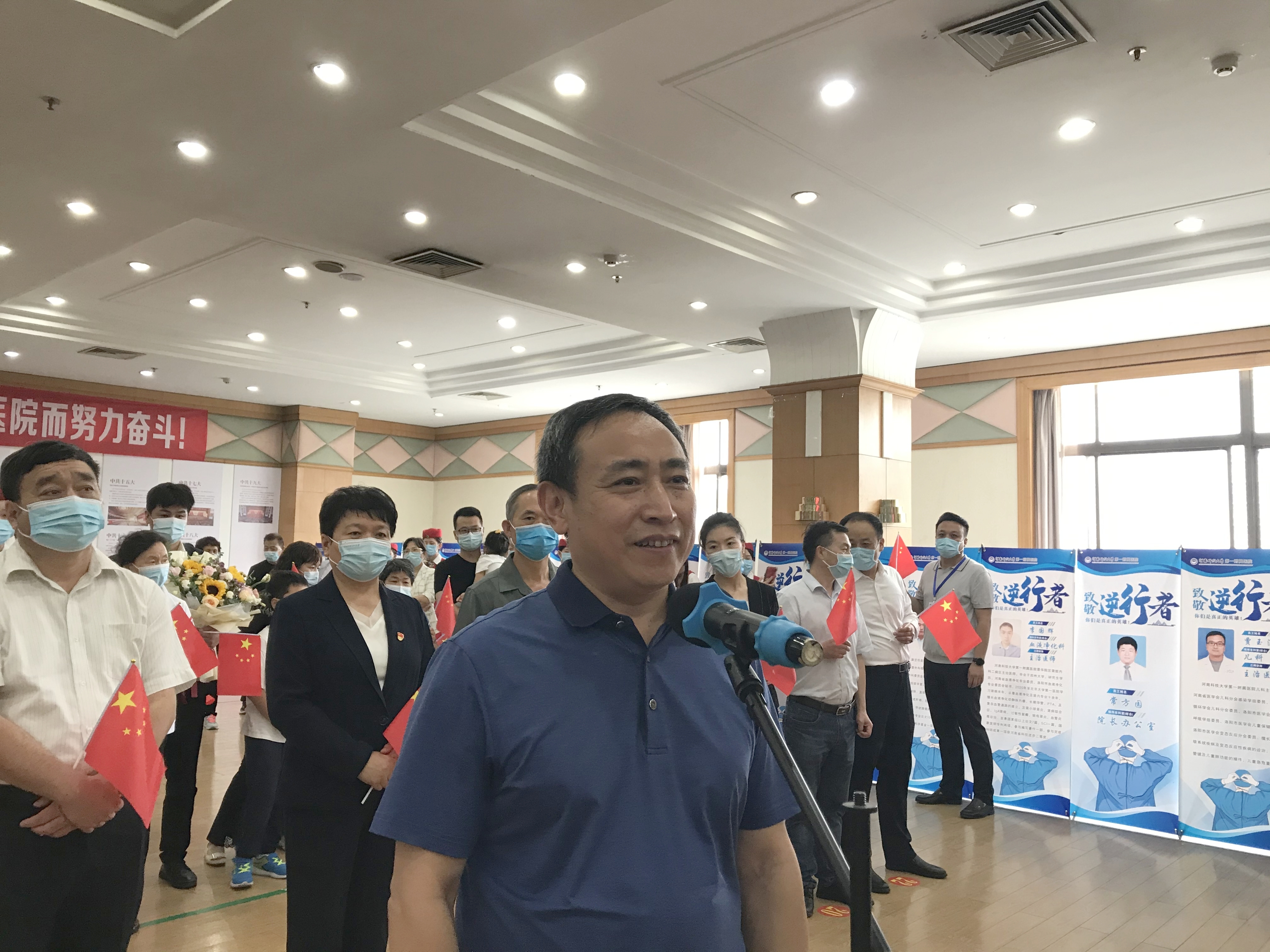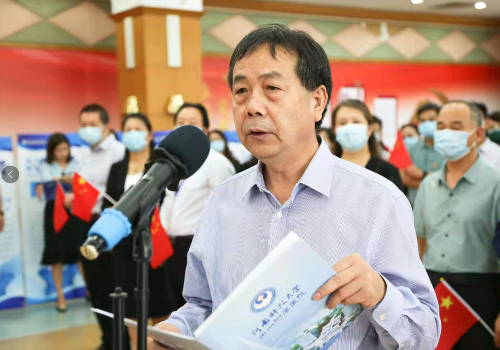 李金乐在仪式上发表讲话,他说,不管是去年的疫情还是今年再次出现的疫情,一附院在紧要关头迅速响应,挺身而出。他代表洛阳市卫健委对一附院表示感谢,对43名援助商丘医疗队队员表及其背后的家人表示感谢,他表示,今后,洛阳市卫健委也将为一附院的发展提供更多支持,为提高洛阳医疗发展水平打好基础。