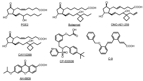 图3. 已用于研究EP2受体的常规配体和化合物(图片来源:J. Med. Chem.)