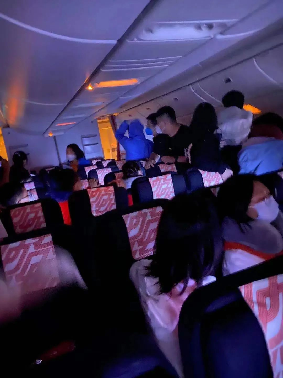 据乘客陈女士称,这架原定2时30分起飞的航班直到3时45分才起飞。“飞机在爬升的过程中就一直听到异响,而且声音很大,后来就听见有‘嘭’的一声,像是有什么爆炸了。空气里也有肉眼可见的小飞絮之类的东西,还有一股很浓的烧焦味道, 之后就看到有人往前舱冲,也有尖叫声。”