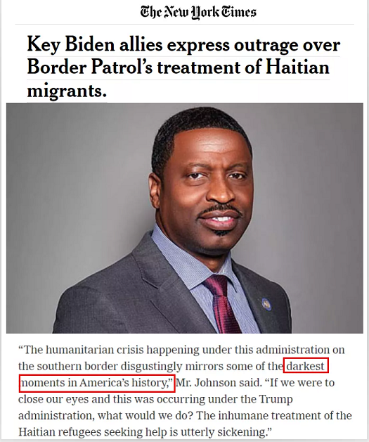 莫拉莱斯:“他们正像对待奴隶一般虐待那些移民。不幸的是,那些人都是黑人,那确实展现了一个可怕的画面,展现了美国是如何对待那些人的。作为一个移民国家,美国历史上一直利用移民作为政治工具。美国人总喜欢说自己张开双臂迎接客人,但事实并非如此。我们看到,他们并没有对海地人张开双臂,而是对他们采取了最糟糕的方式。”