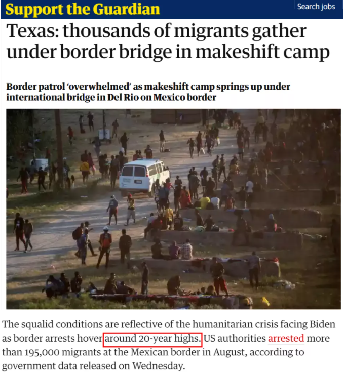 △英国《卫报》报道:营地肮脏的条件反映出拜登政府面临的人道主义危机,边境被捕人数达 20 年来的高点。