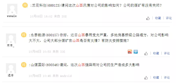 在互动平台,山煤国际、晋控煤业、山西焦煤、美锦能源等上市公司股民也开始询问有煤炭业务的上市公司相关问题。但未有公司在平台回复留言。