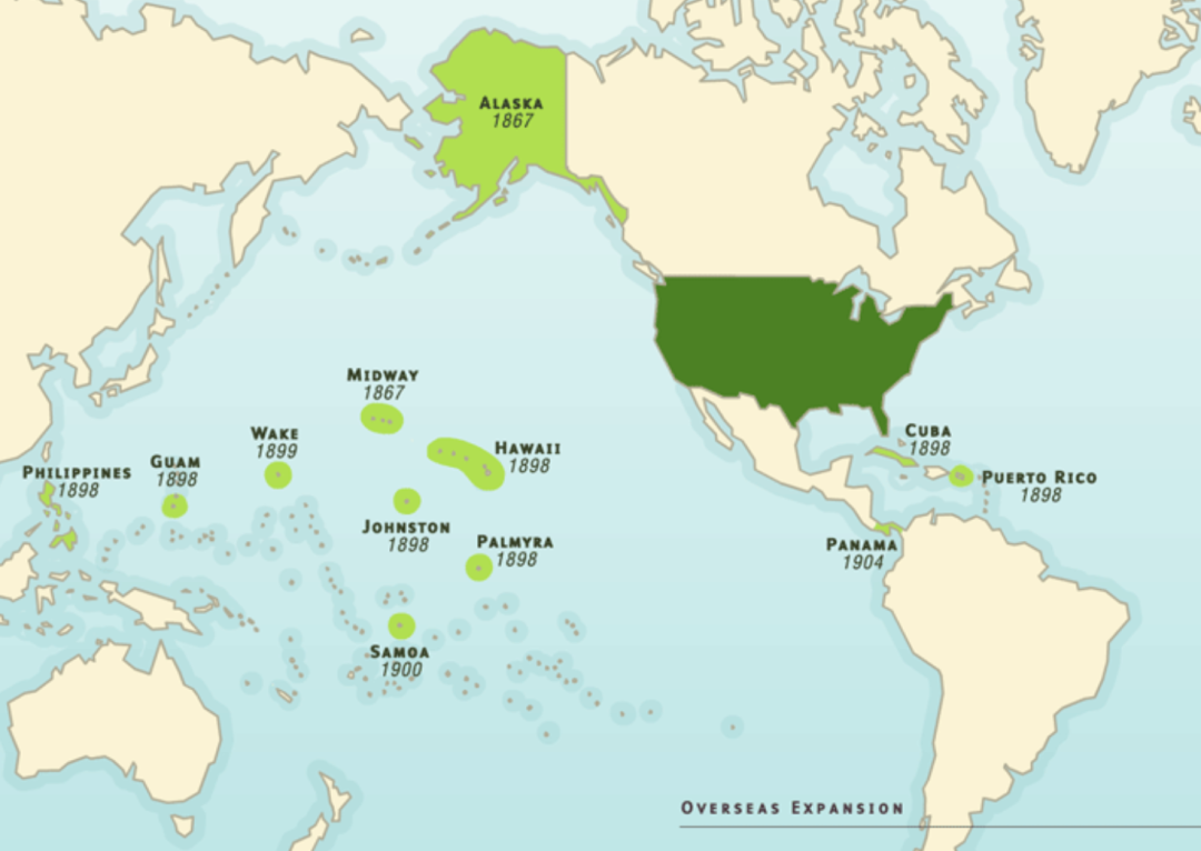 然而,美国的扩张并没有止步于此。大量公开资料显示,在打完由于蓄奴等一系列问题而引发的血腥内战、导致60多万人死亡后,美国反而在19世纪末开始了疯狂的海外扩张,先后通过从俄罗斯人那里购买和从西班牙殖民者那里抢夺的方式,获得了阿拉斯加、古巴、关岛、波多黎各以及菲律宾等一系列海外领土。
