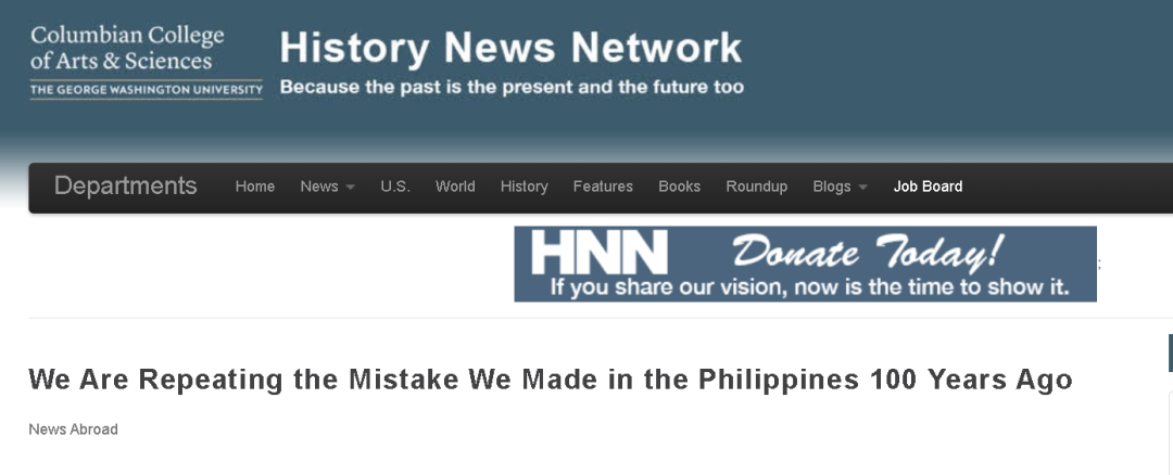 (图为美国一些研究历史的学者哀叹说美国在伊拉克身上重演了一百多年前在菲律宾上犯下的错误)