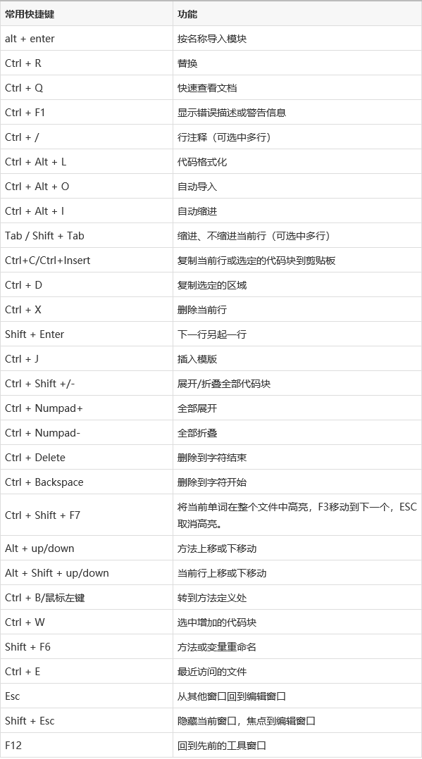 下面总结了PyCharm几乎所有默认快捷键,方便大家查找,喜欢的收藏!
