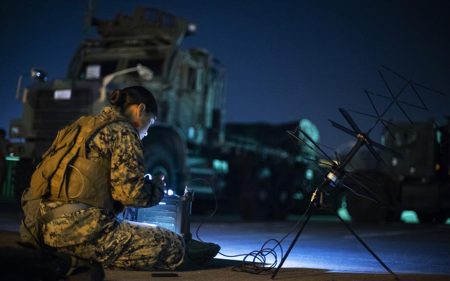 美国《星条旗报》网站10月29日报道称,10月27日晚间,位于日本广岛附近的美国海军陆战队岩国航空站里响起警报声,向部署在此的日本海上自卫队队员和美国海军陆战队士兵发出信号,一场模拟的导弹袭击正在进行。