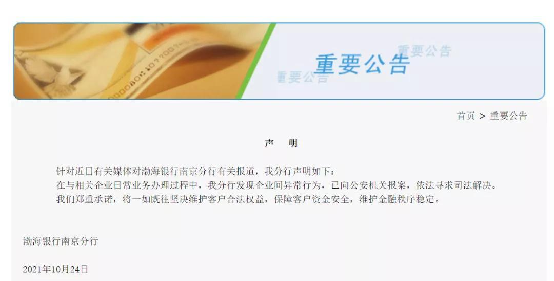 而就在刚刚,渤海银行第一次就这件事接受媒体采访,做出公开说明。