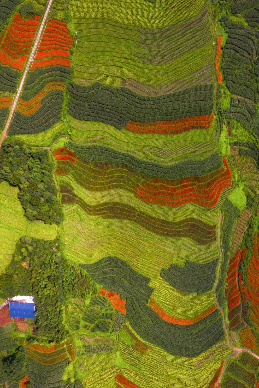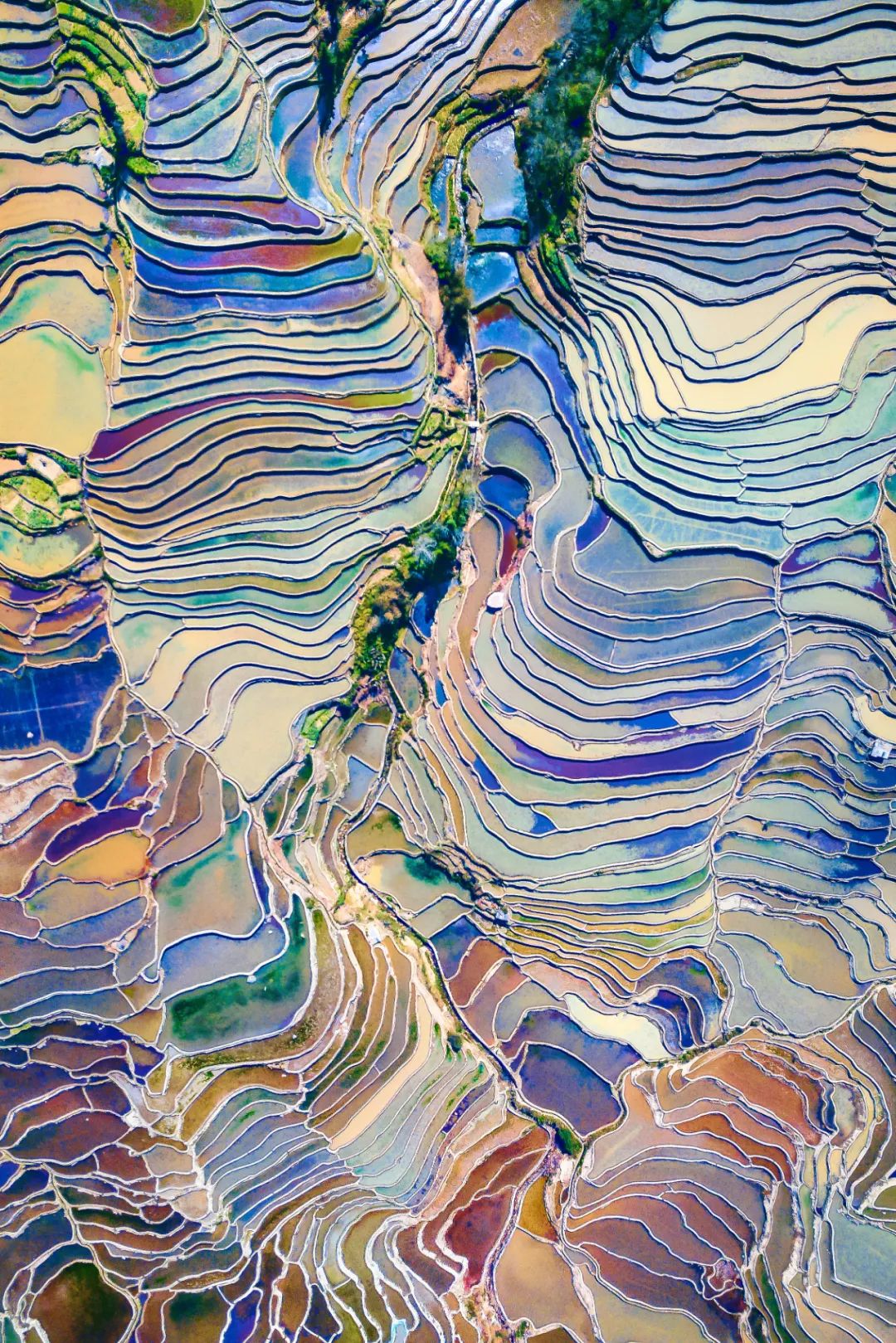 高空俯瞰元阳梯田,像一块块巨大的“宝石”。