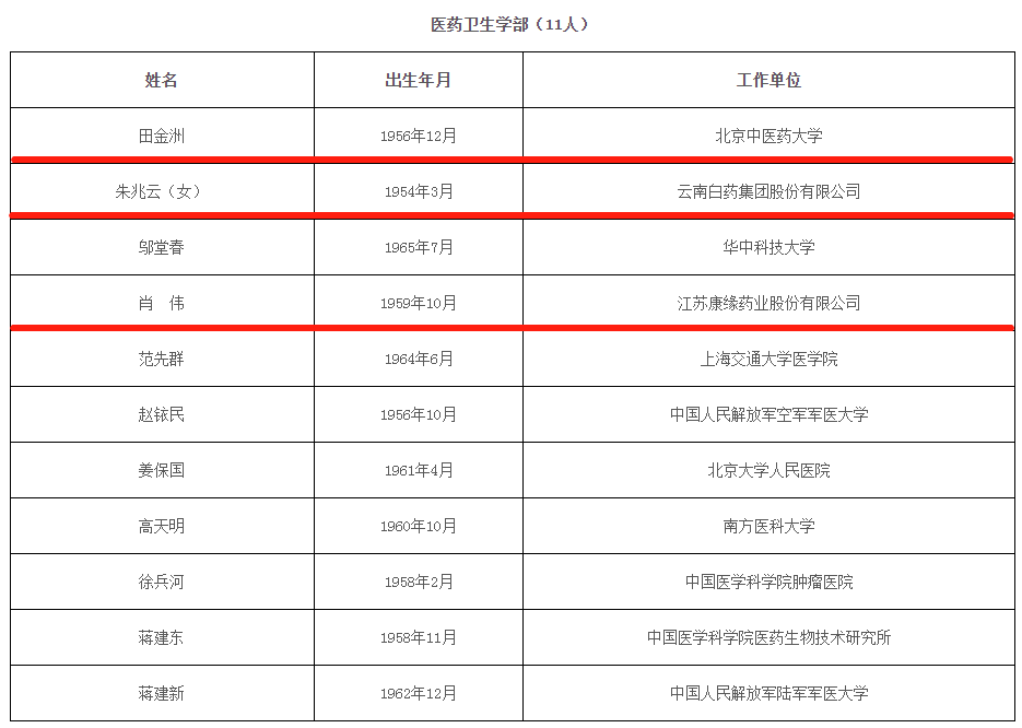 11月18日,中国工程院2021年院士增选结果公布。共选举产生84位中国工程院院士和20位中国工程院外籍院士。北京中医药大学田金洲、云南白药集团股份有限公司朱兆云(女)、江苏康缘药业股份有限公司肖伟入选。