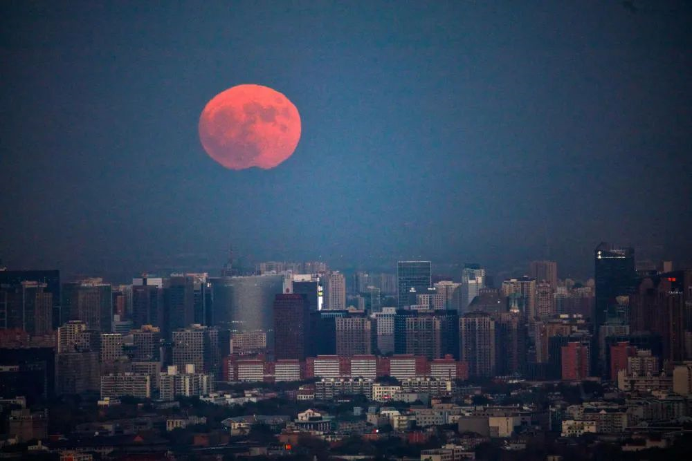 最后说一个小技巧,寻找适合的地理位置和地面建筑,利用长焦镜头和距离拍摄地较远的前景,可以拍出视觉效果突出的“超级月亮照”。