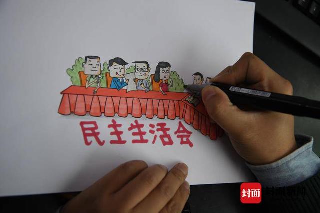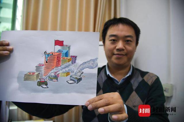 “漫画读本虽然以诙谐幽默表现,但该书要求不过度夸张,以写实为主,既要满足形式主义官僚主义的条款表现,又要符合对应的相关案例。”拿到“命题作画”,因为没有资料可以参考,但渊只能独立思考创作。