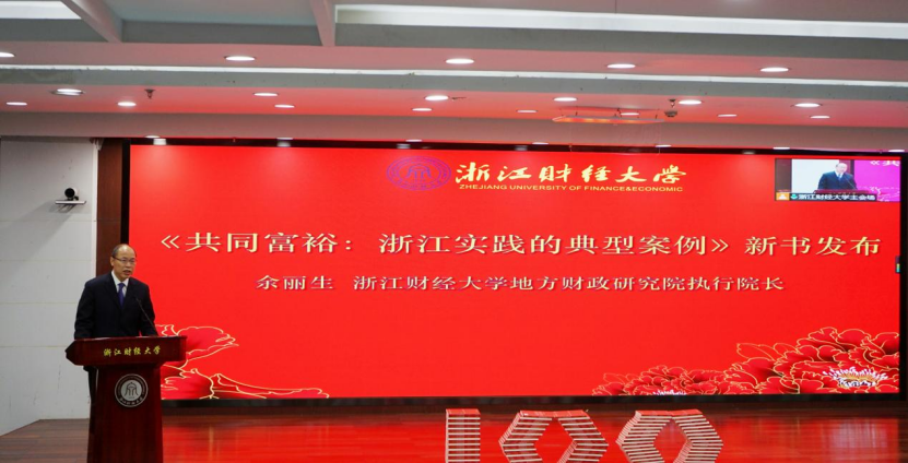 12月4日,共同富裕:浙江实践与探索论坛暨《共同富裕:浙江实践的典型案例》新书发布会在浙江财经大学杭州下沙校区举办。本次活动由浙江财经大学主办,浙江省新型高校智库地方财政研究院和浙江财经大学乡村振兴研究院承办,浙江财经大学财政税务学院协办。来自浙江省、市、县、乡、村各级政府部门的150余位代表、200余位高校学者和青年学生代表参加论坛,会议采用线上线下相结合的方式举行。本次会议由浙江财经大学副校长李占荣教授主持,浙江财经大学校长钟晓敏教授、浙江省财政厅农业处副处长何法顺作开幕式致辞,浙江财经大学地方财政研究院执行院长余丽生研究员作《共同富裕:浙江实践的典型案例》新书发布。德清县、龙游县、缙云县、平湖市、仙居县、长兴县吕山乡、建德市杨汛桥镇及东阳市花园村的8位代表作共同富裕实践案例分享。