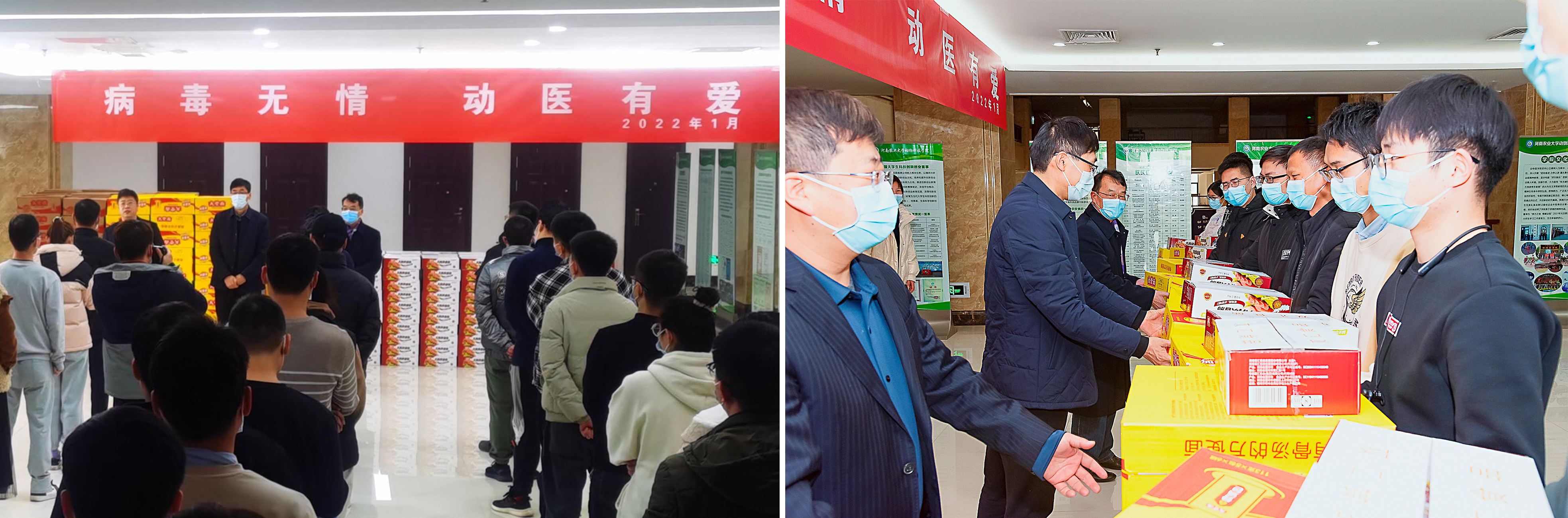 “截止今日,我们还有193名在校研究生,春节期间无法返家的学生为66人。学院为各实验室购置了充足的饮用水、小面包、方便面、火腿肠、防疫礼包等用品,保障留校学生所需。采取导师学生“一对一”模式,全面关注学生在校学习生活需求。辅导员和班主任组成志愿服务队,全面开展防疫消杀、心理疏导、后勤生活保障等工作。同时,提供勤工助学岗位,缓解部分留校学生经济压力,确保同学们在校度过一个温暖、安全、幸福的特殊春节。”河南农业大学动物医学院党委副书记王照兰介绍了为留校学生准备的“花式温暖”。