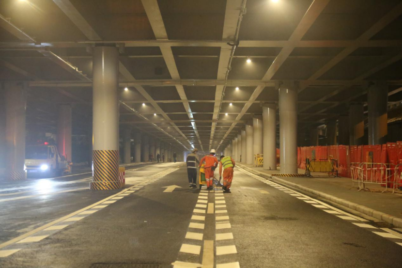记者了解到,鹤洞大桥桥下昌岗西路于2021年5月29日起开始封闭,为实施该路段桥面拆除重建以及桥下98根桥墩维修加固工程创造必要施工条件。因该路段周边商铺、居民楼较多,为尽快恢复桥下交通,自1月10日鹤洞大桥桥面恢复通车后,项目部迅速转战桥下“战场”,马不停蹄地再次投入到紧张有序的施工中,仅用半个月时间,完成了桥下路段约6000m²沥青路面、400m²标线、3800m²人行道等的修复翻新。