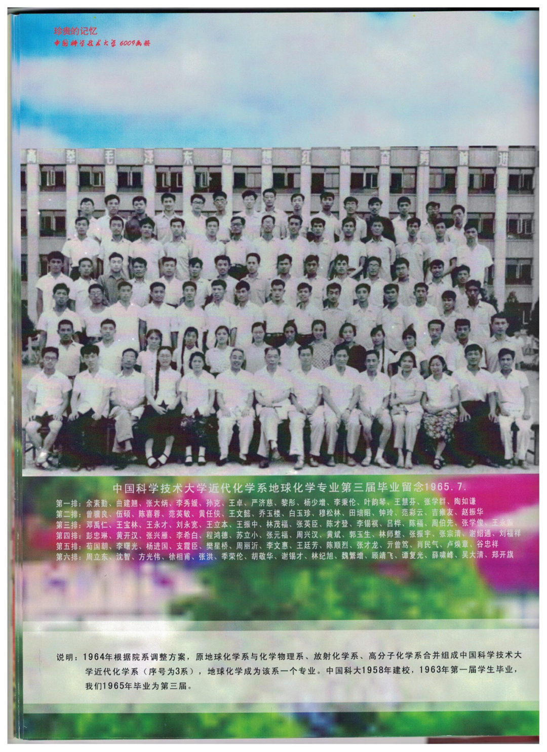 中国科学技术大学近代化学系地球化学专业第三届毕业留念1965.7